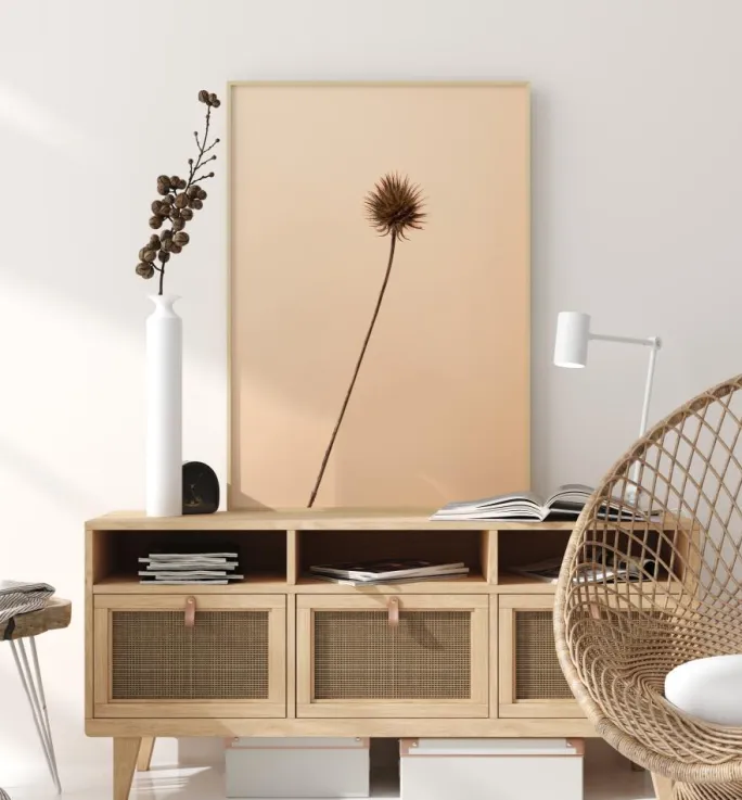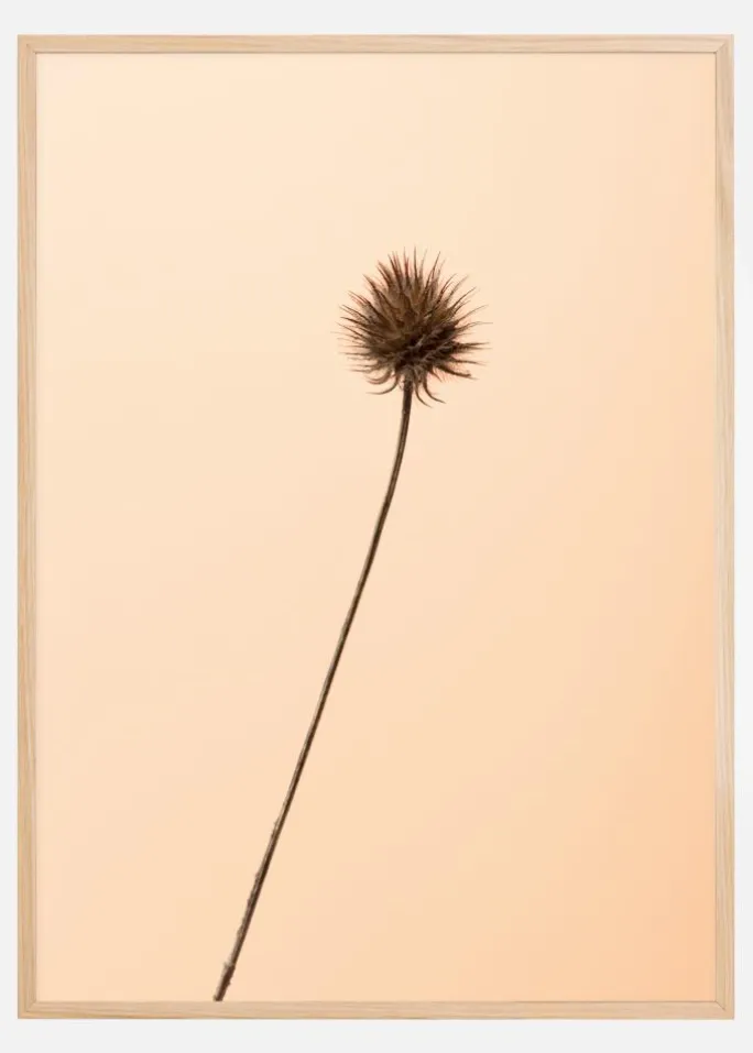 En enkel blomsterplakat med en enkeltstående tidsel mod en bleg himmel. Tag dette print med hjem og bring en smule af naturen indenfor.
