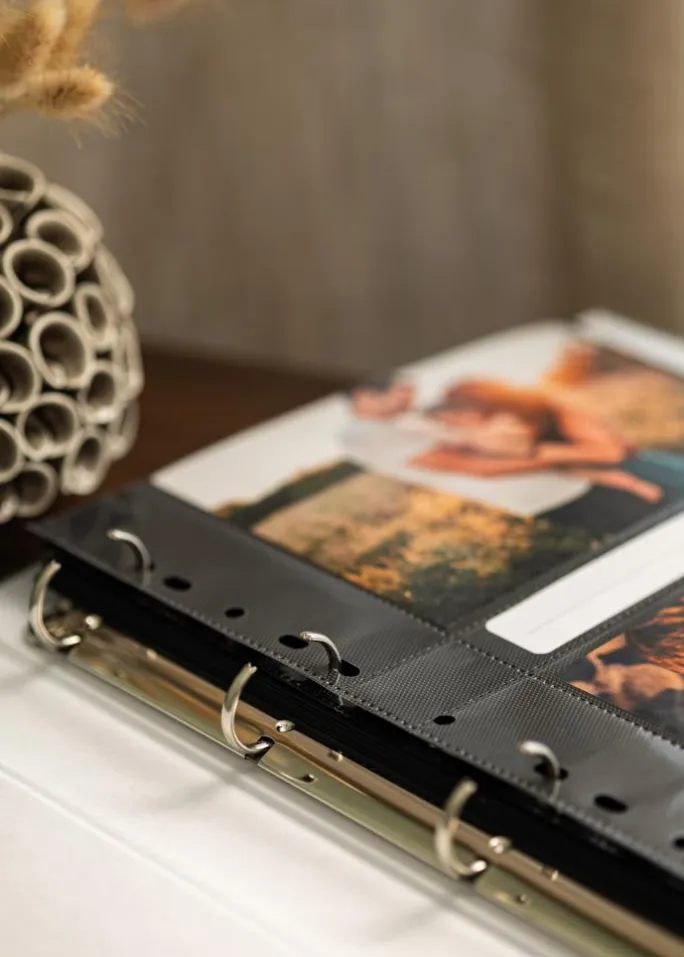 Ultimate Fotolommer 13×18 cm Liggende er et sæt med 10 sorte albumbelag i størrelsen 23,5×32,5 cm. De rummer op til 40 liggende billeder i formatet 13×18 cm og har også plads til egne noter, perfekt til at skrive datoer, navne eller andre mindeværdige detaljer. En praktisk og stilren løsning til at organisere og bevare dine fotos.