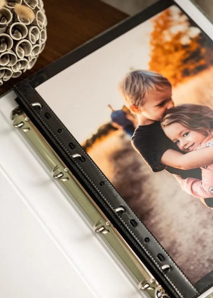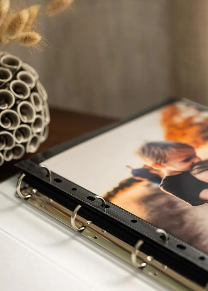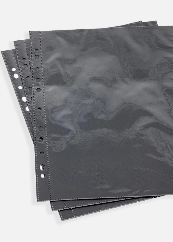 Ultimate Fotolommer 21×29,7 cm A4 Stående er et sæt med 5 sorte albumsider i størrelsen 23,5×32,5 cm. De rummer i alt 10 stående billeder i A4-format (21×29,7 cm). En praktisk og stilren løsning til at organisere og bevare dine fotos på en sikker og overskuelig måde.