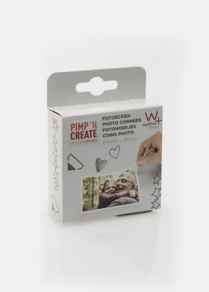 Montér dine billeder, uden at de tager skade, ved hjælp af fotohjørner! Her har vi 250 transparente og diskrete fotohjørner med en hvid bagside.
