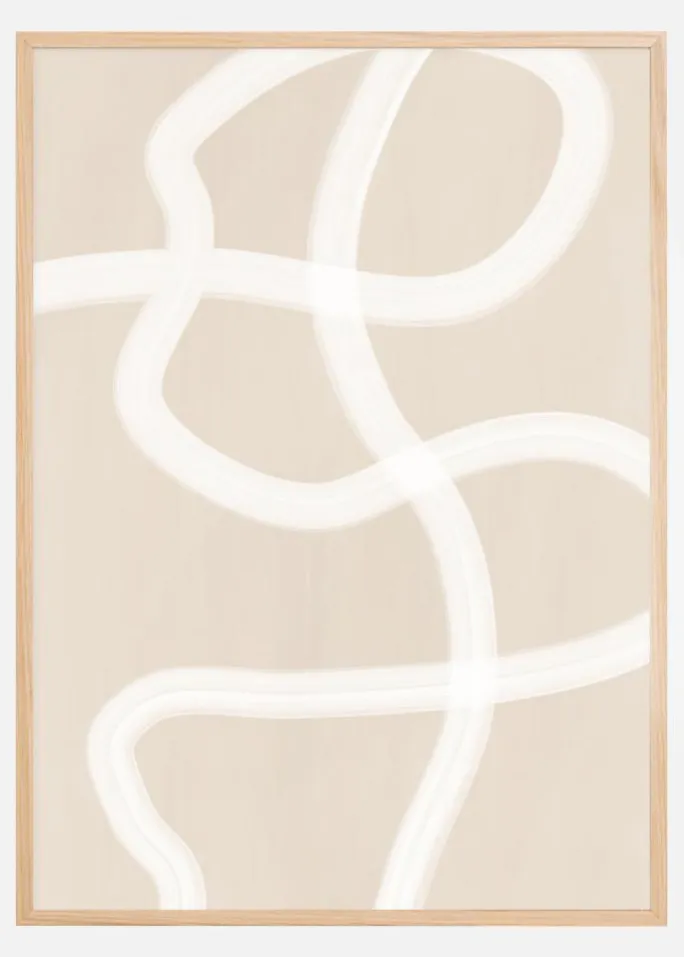 Dette posters svepende hvide penselstrøg mod en varm beige baggrund tilbyder en fængslende og nutidig æstetik. Dens flydende linjer og organiske former giver en følelse af bevægelse og spontanitet, samtidig med at den bevarer en nedtonet og ren følelse, der er typisk for moderne minimalistisk design.