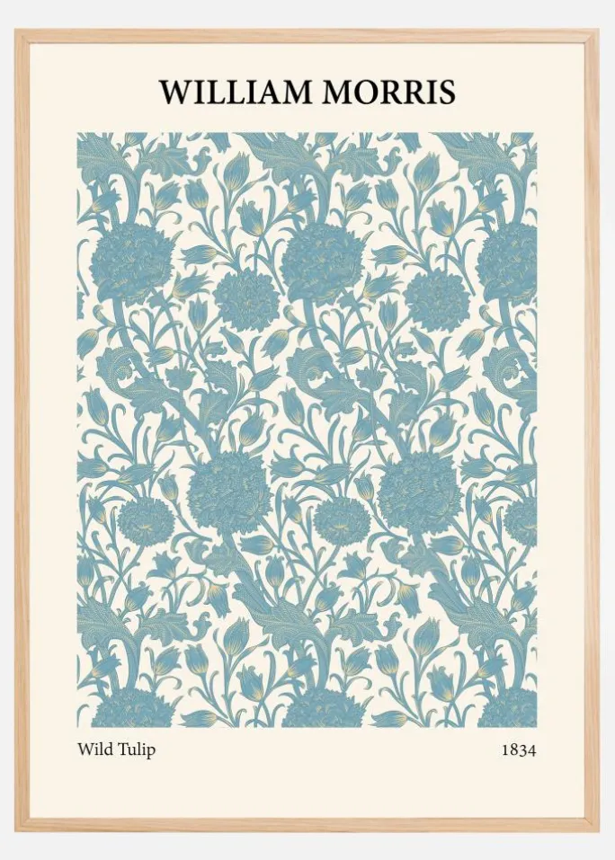 Denne eksklusive William Morris-plakat, “Wild Tulip”, er en fremvisning af kunstnerens ikoniske stil og kærlighed til naturen. Med et udsøgt mønster af tulipaner i nuancer af kølig blå og grøn, mod en cremefarvet baggrund, gengiver denne print den rige tekstur og detalje, som Morris er kendt for. Dens rige og levende design skaber et iøjnefaldende fokus i enhver indretning og tilbyder en tidløs skønhed, der er karakteristisk for Morris’ værker.