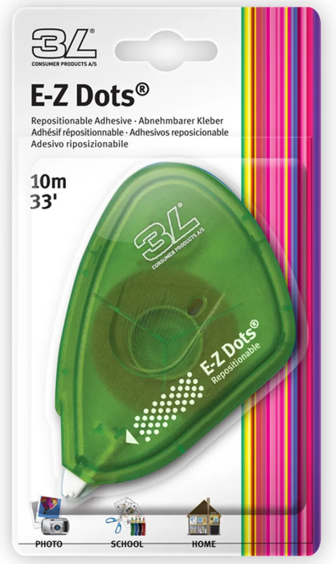 Dette er en ikke-permanent fototape fra 3L. Tapen består af små selvhæftende prikker, der er lilla. Ved hjælp af farven er det nemt at se prikkerne og fjerne tapen, når du er færdig. En rulle indeholder 10 meter tape med en bredde på 9 mm.