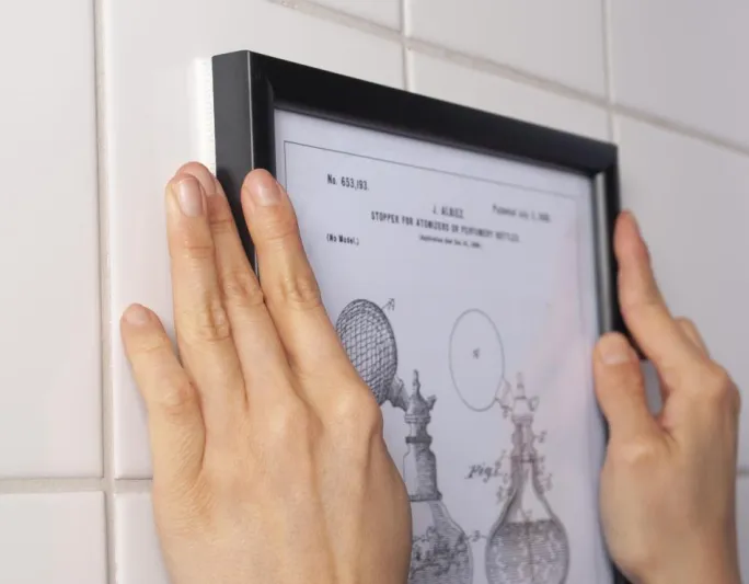 Intruktioner: Start med at rengøre væggen og lad tørre (væggen må ikke være tapeteret eller have skader). Derefter sætter du velcrosiderne sammen og trækker beskyttelsesplasten væk som sidder på. Placer klistersiden mod bagsiden af billedrammen og tryk til. Når begge sider er på plads fjerner du beskyttelsesplasten som nu peger ud ad for at du til sidst kan trykke din billedramme fast. Når velcrobåndene sidder på plads på væggen fjerner du forsigtigt rammen løs og trykker på velcrobånene i ca 30 sek. For at tapen skal kunne nå at virke så skal du vente 60 minutter inden du for en sidste gang trykker billedrammen fast igen.