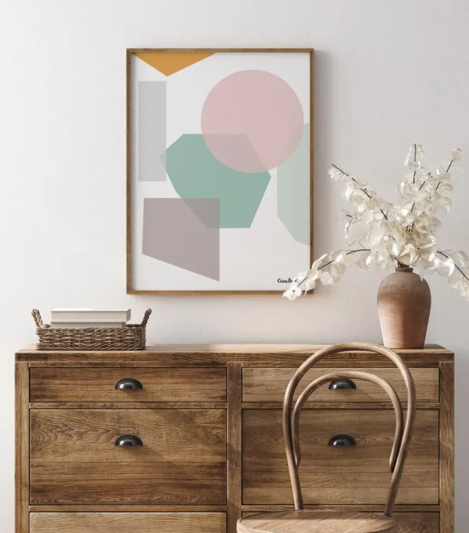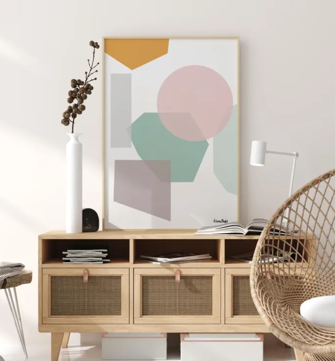 En abstrakt plakat med grafiske former i dejlige pastelfarver skabt af designeren Elina Dahl. Motivet passer perfekt til det moderne hjem eller måske til børneværelset? Suppler gerne med flere af vores dejlige Elina Dahlplakater for en større billedvæg i samme tema.