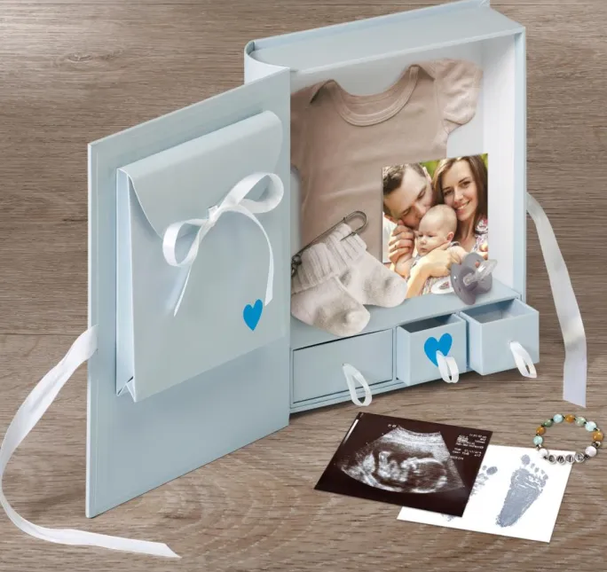 Denne mindeæske er både praktisk og sød. Den er en dejlig gave at give til nybagte forældrer – og du kan naturligvis også unde dig selv denne fine opbevaringsæske. Den er god til opbevaring af sutter, små beklædningsgenstande, lykønskningskort, fotografier og andre minder fra babyens første år.