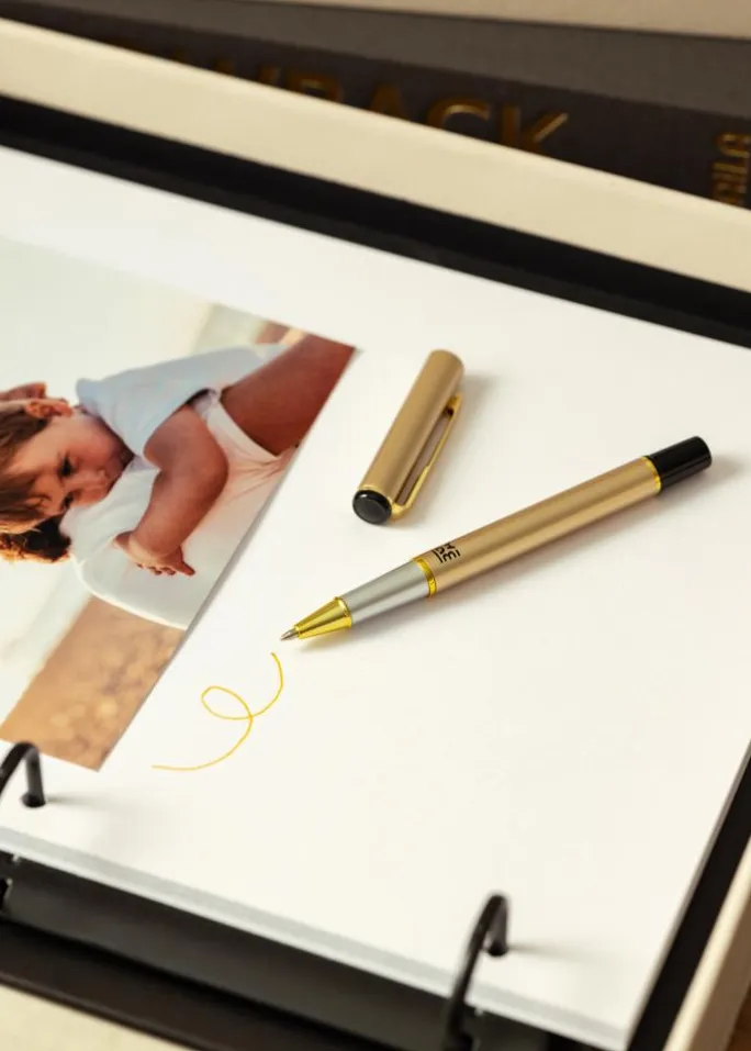Denne elegante albumpen i guld er det perfekte værktøj til at skrive personlige noter i dit fotoalbum. Med sin smidige og præcise spids på 0,5 mm giver den en jævn og behagelig skriveoplevelse, hvilket gør den ideel til at datere billeder, skrive kommentarer eller skabe dekorative detaljer.