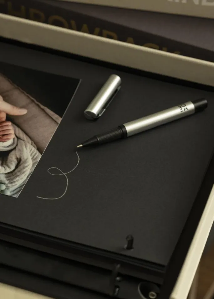 Albumpen i farven sølv metallic som fungerer godt til brug på f.eks. blanke overflader såsom fotografier. Pennen har en spids med en bredde på 1 mm.