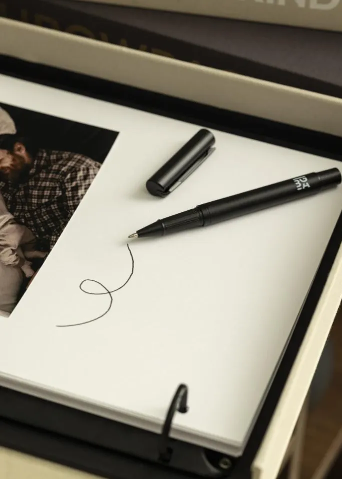 Albumpen i sort farve som fungerer godt til brug på f.eks. lyse overflader såsom fotografier og albumsider. Pennen har en spids med en bredde på 1 mm.