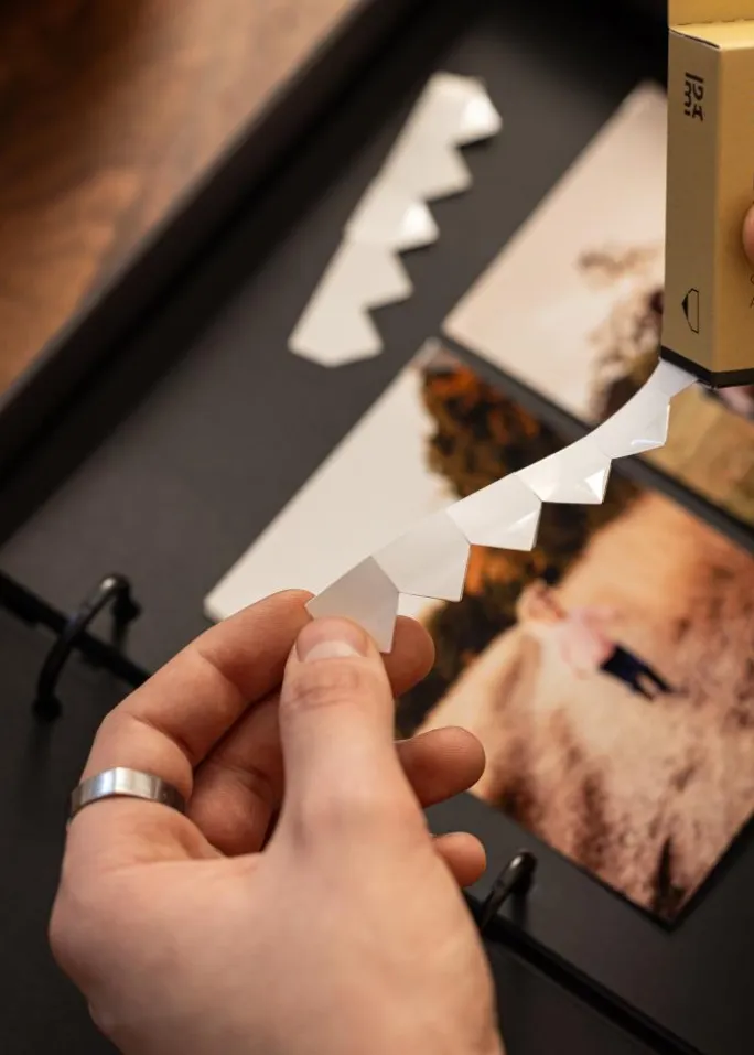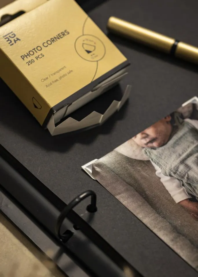 Fotohjørner er perfekte når du f.eks. vil indsætte billeder i et fotoalbum og ikke vil anvende lim. Da billederne placeres i fotohjørnerne, beskytter man disse hjørner mod hakker som ellers kan komme med tiden. Fotohjørner gør det nemt at indsætte dine billeder, og det giver et flot resultat.