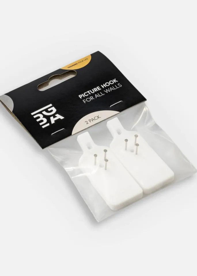 Med denne billedkrog kan det ikke gå lettere eller hurtigere at få dit billede op på væggen. Du behøver intet avanceret værktøj – bare en almindelig hammer. Uanset om dit billede har ophængningswire eller om det ophænges direkte i rammens kant, så kan det hænges op ved hjælp af denne billedkrog. Billedkrogen klarer desuden op til 5 kilos tyngde og hele 10 kilo hvis du anvender to billedkroge til samme billede.