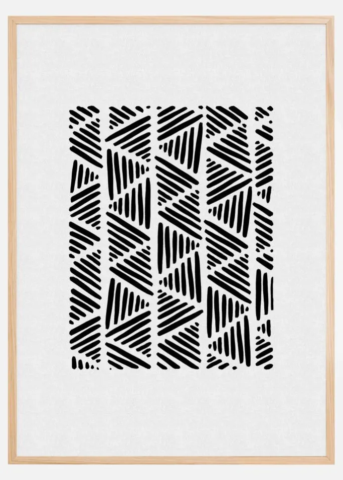 Deres enkle men alligevel komplekse design gør det til en alsidig dekoration, der kan komplementere både minimalistiske og mere fyldte interiører. Legen med linjernes tykkelse og retning giver et optisk interessant motiv, der opmuntrer beskueren til selv at tolke, hvad de ser. Dette print er ideelt for den designbevidste person, der søger efter et kunstværk, der vækker nysgerrighed og samtale.