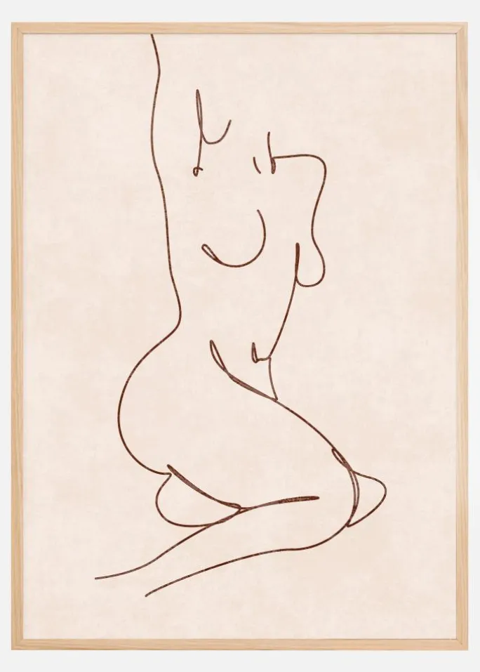 Denne elegante og minimalistiske plakat fremstiller en kvindelig figur i en enkel, flydende linje. Kunstens subtile udtryk og den nedbarberede stil er en hyldest til skønhedens enkelhed. Den suggestive kontur skaber et stærkt billede med minimal detalje, hvilket gør det til en samtidsfortolkning af den klassiske skønhed og kroppens naturlige kurver.