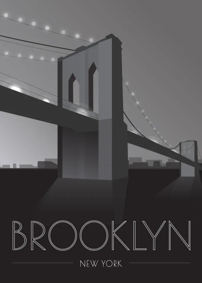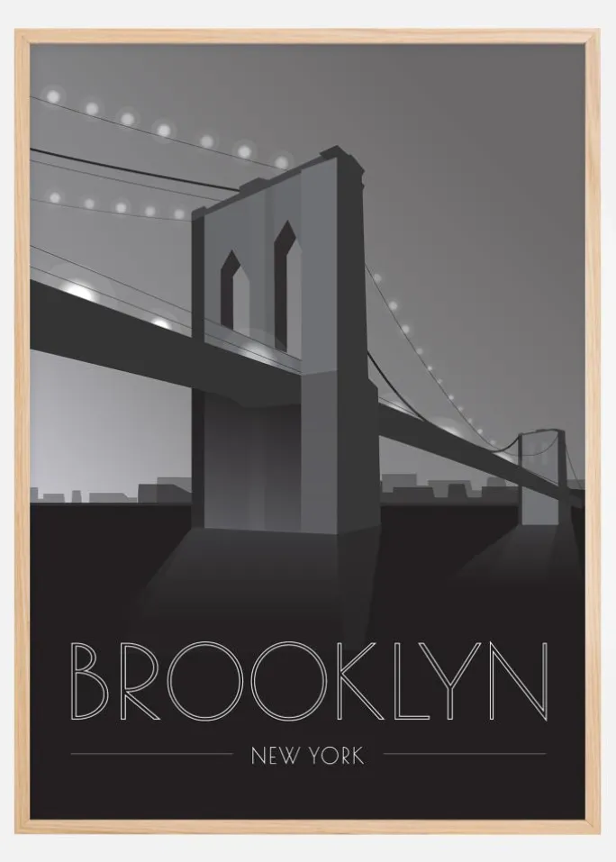 Rejs hele vejen til Brooklyn hver gang du kigger på dette dejlige kunstværk. Brooklyn Bridge er en poster af høj kvalitet, der tilføjer en dejlig retrofølelse til dit hjem. Det minimalistiske design er i hvidt, gråt og sort med teksten “Brooklyn New York” i hvidt. Gråskalaen gør den perfekt til at kombinere med dine favoritfarver! Hæng den op som den er, eller fuldend med en stilfuld ramme og passepartout. Findes i 6 forskellige formater og prisklasser.