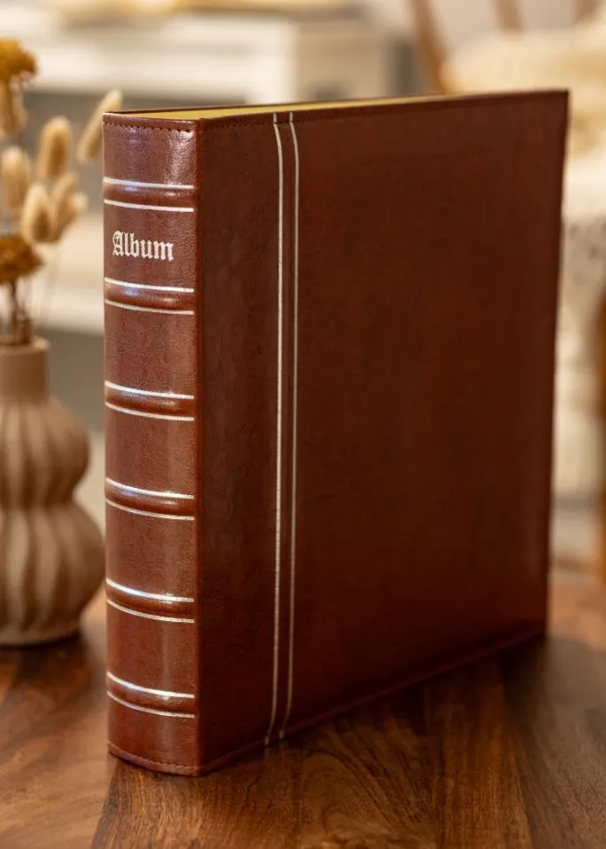 Chesterfield Gigant Ringbind er et elegant og rummeligt album i klassisk design, perfekt til at samle og bevare dine mest værdifulde minder. Det brune bind har en stilfuld kunstlæderoverflade med præget detaljer og sølvfarvede linjer, der giver en tidløs og sofistikeret følelse.