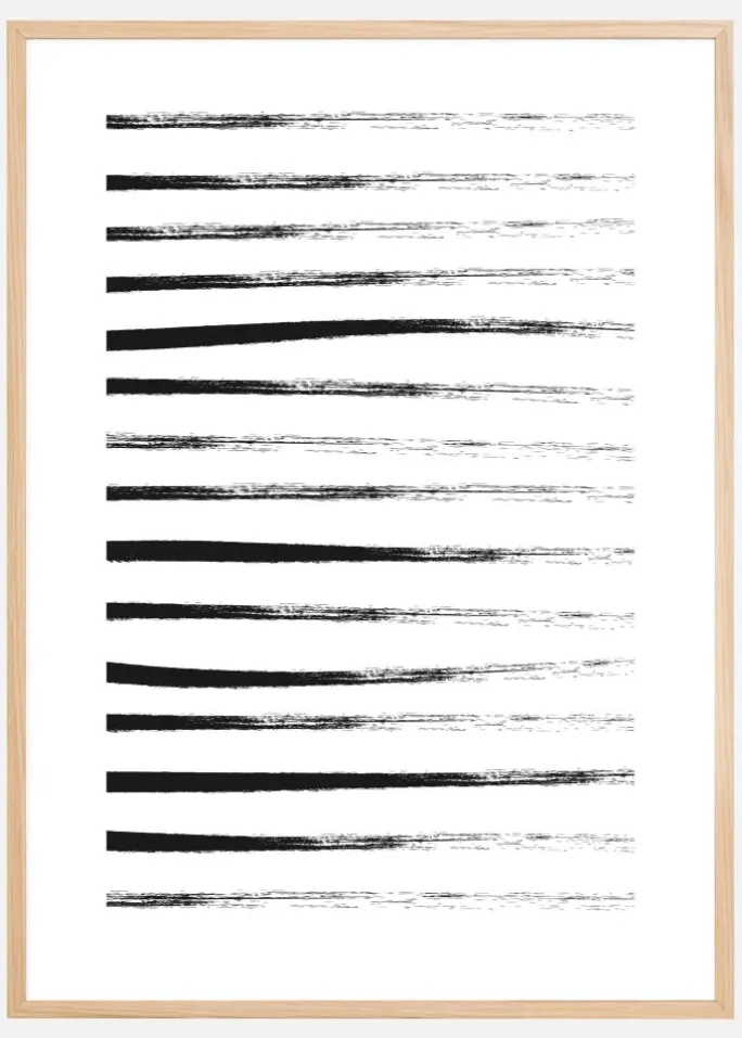 En elegant plakat med sorte linjer. Linjerne starter som kraftige tykke sorte linjer fra venstre og forsvinder ud over højre side, når penselstrøget slutter. Dette maleriske værk ville se fantastisk ud på en væg i en fed farve for at få linjerne til at springe frem.