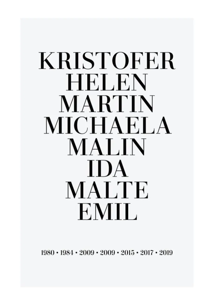 En personlig plakat er en unik og sjov gave, både at give og at modtage, og den bliver et fint minde, som vil blive passet på i lang tid. Du udfylder blot de ovenstående felter med den information, du ønsker at inkludere, så skaber vi din personlige plakat!