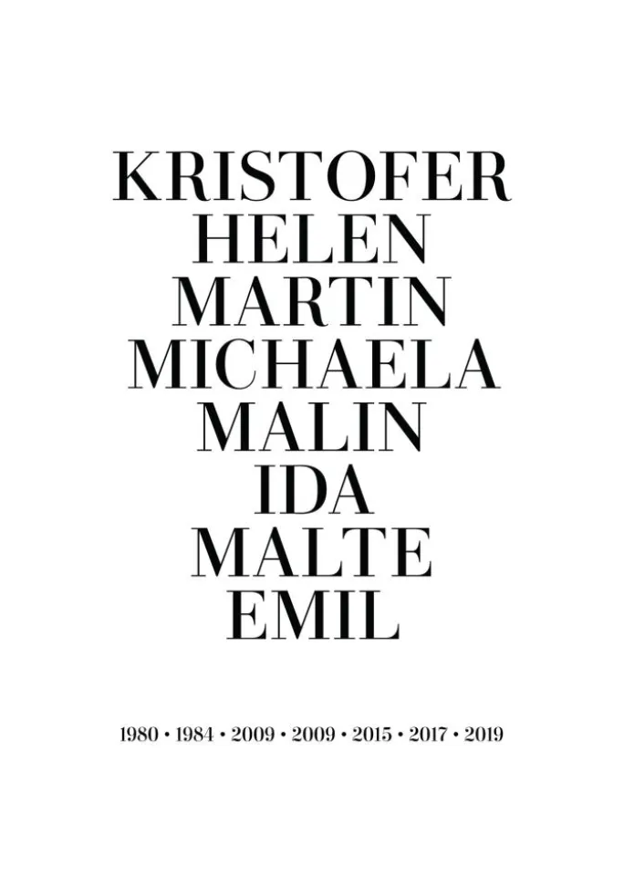 En personlig plakat er en unik og sjov gave, både at give og at modtage, og den bliver et fint minde, der vil blive passet på i lang tid. Du udfylder bare de ovenstående felter med den information, du ønsker at inkludere, så skaber vi din personlige plakat!