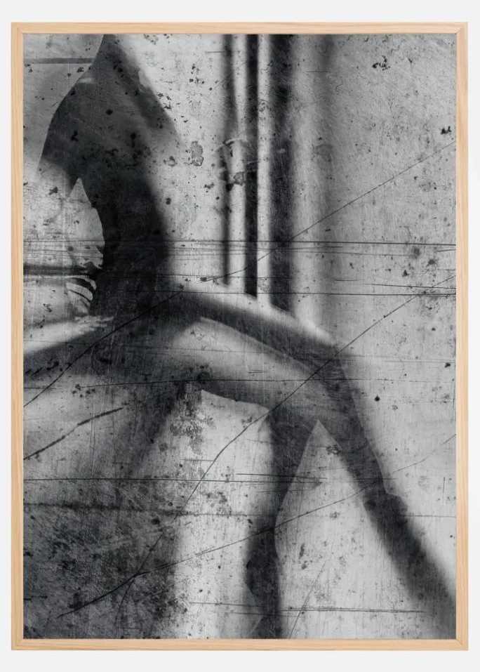 En abstrakt plakat af en kvinde, der sidder på en væg. Det sort-hvide billede er fuld af linjer og bløde kanter for at skabe dette kunstneriske, impressionistiske værk. Tilføj den til en hvid væg for et dramatisk look, eller sæt den sammen med en fed farve for mere dramatik.