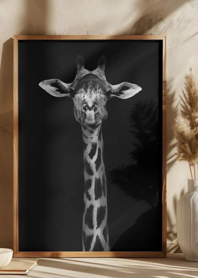 - MotivSort-hvide / Giraffer / Dyr / Mennesker & Portrætter / Fotokunst / Minimalistisk kunst