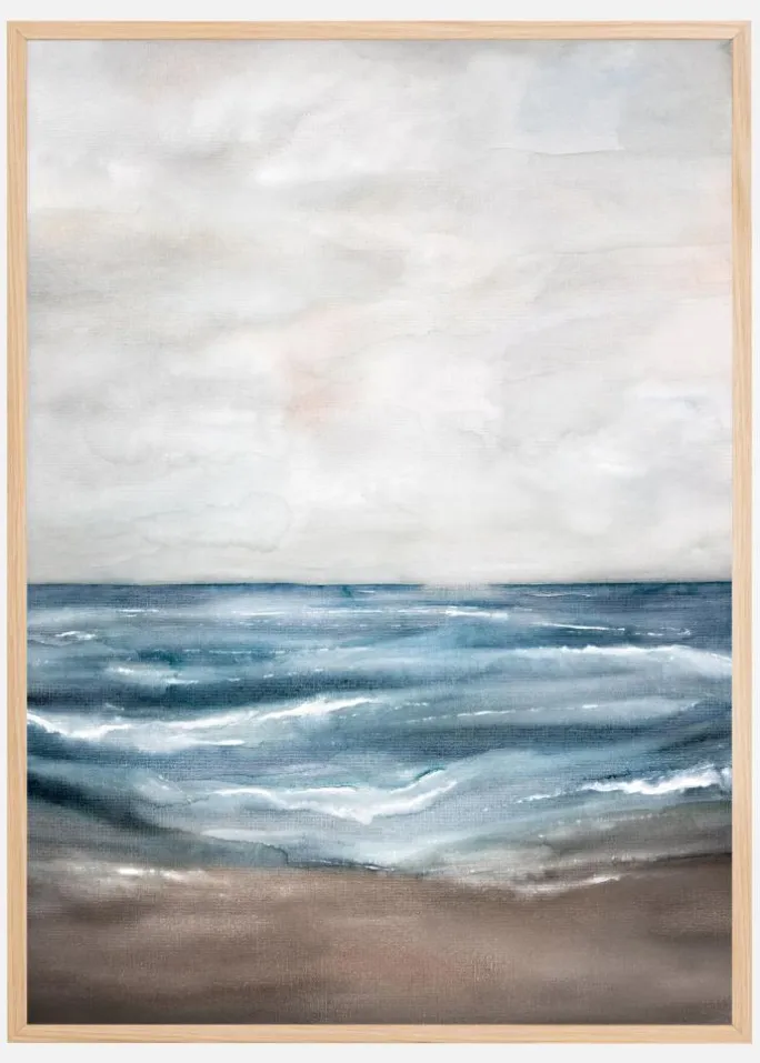 Et vidunderligt akvarelmaleri af et oprørt hav og en lysegrå himmel. Et nostalgisk og alligevel kraftfuldt maleri, der fremhæver havets styrke og kraft. Det brune hav i forgrunden tilføjer det ekstra strejf af farve for at skabe en stormfuld atmosfære. Mærk havbrisen, når du hænger dette print op.