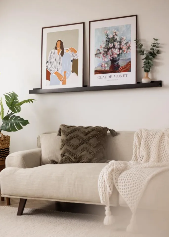 Vis og varier din vægkunst enkelt og flot med en elegant billedhylde! Denne billedhylde er fremstillet i MDF og er trendmæssigt sortmalet med en fin, halvblank overflade. Billedlisten har et stilrent design med lige, enkle linjer og en minimalistisk følelse. Hyldeplanet har en udfræset rille i midten, som fungerer som støtte til dine billeder og giver dem en flot vinkel, hvor de står skråt mod væggen.