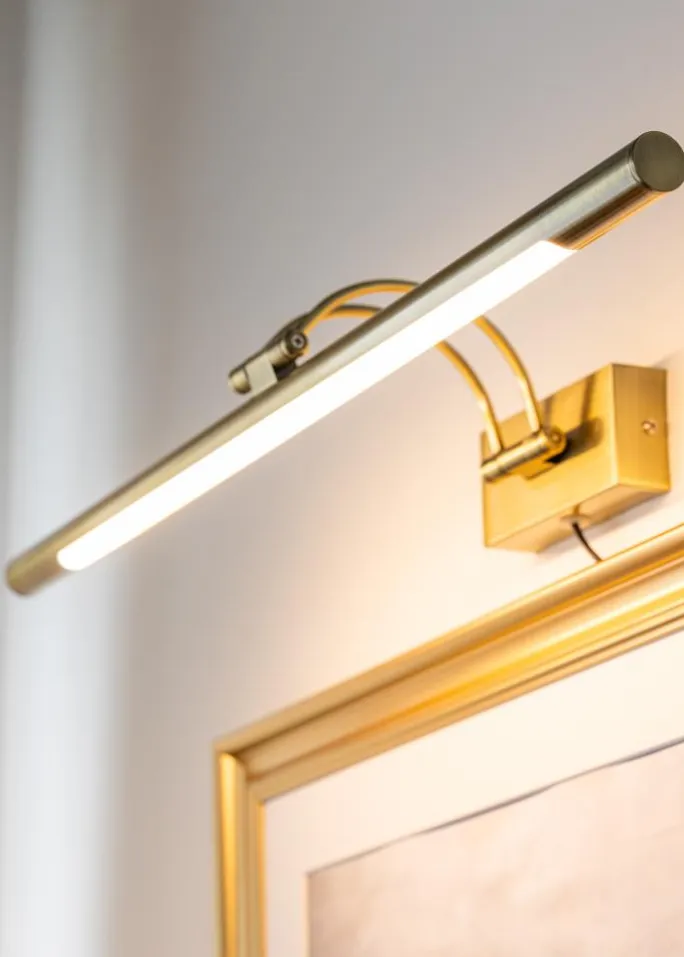 Belysningens bronzefarvede finish giver et sofistikeret og klassisk udseende, der let kan integreres i både moderne og traditionelle miljøer. Med den praktiske dimmerfunktion kan du nemt tilpasse lysstyrken for at få en mere dæmpet eller intens belysning, afhængigt af hvad situationen kræver. LED-lampen tilbyder en jævn fordeling af lys, hvilket sikrer, at din kunst altid fremstår i sit bedste lys.