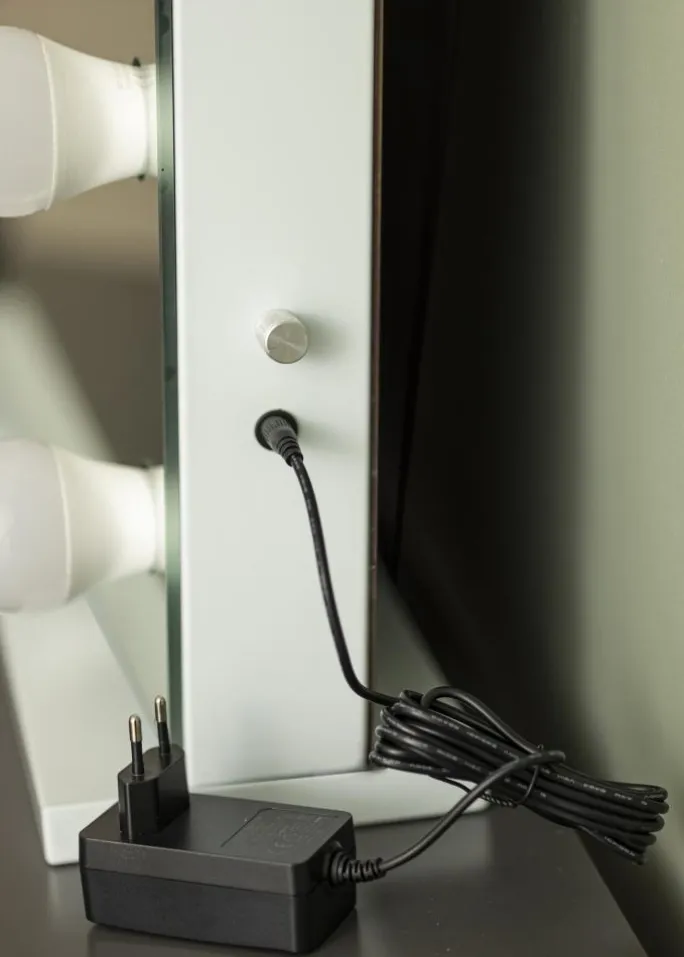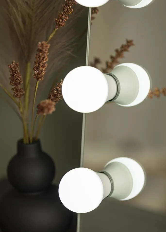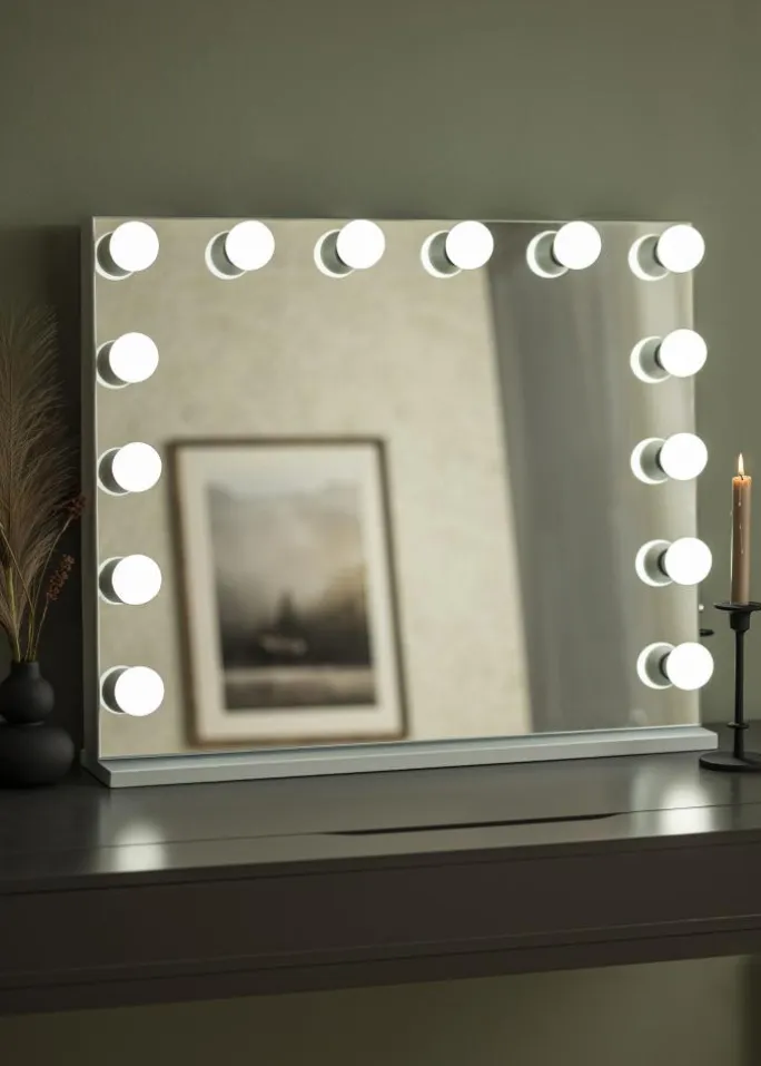 - 14 udskiftelige pærer som indrammer spejlet