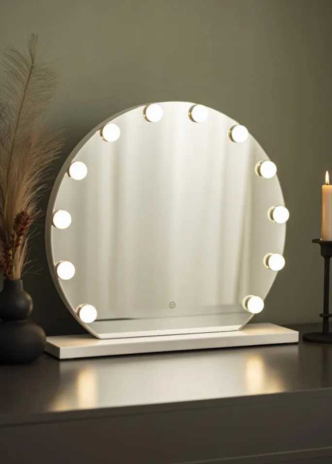 - Rundt makeupspejl i klassisk Hollywood-design
