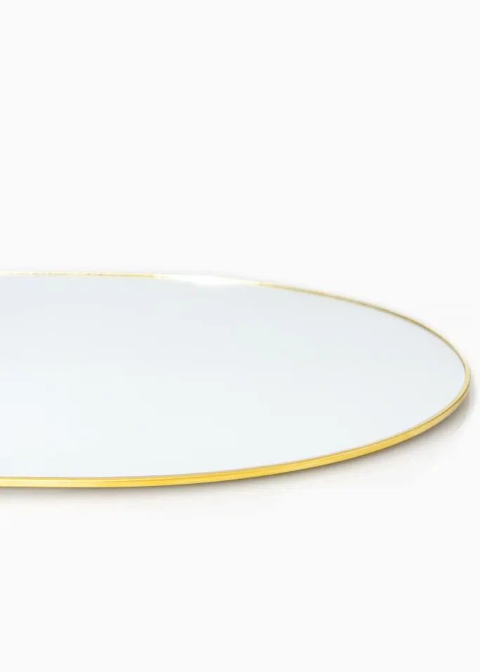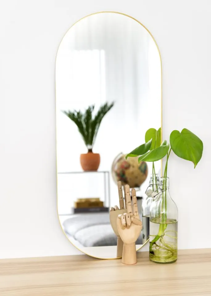 - Ovalt vægspejl med tynd messingkant