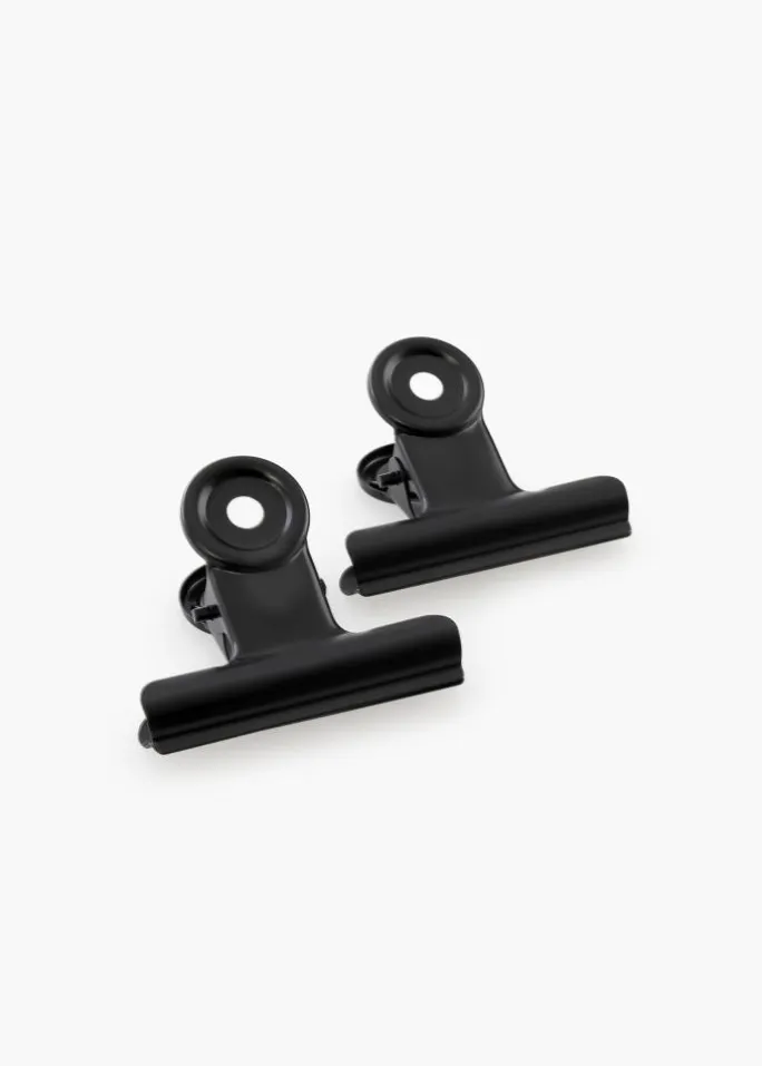 Denne sorte metalklemme har en flot mat finish og med denne klemme kan du hænge dine plakater og posters op på en elegant og smart måde. Klemmens åbning har et godt greb som gør, at du kan fastgøre selv det tyndeste papir, men det er også muligt at anvende klemmen til motiver med lidt kraftigere tykkelse. Har du en stor plakat som du vil hænge op, kan du vælge at anvende to posterklemmer. Metalklemmens design er stilrent, og hullerne i klemmens runde top gør det enkelt og let at hænge den på væggen med et lille søm eller skrue.