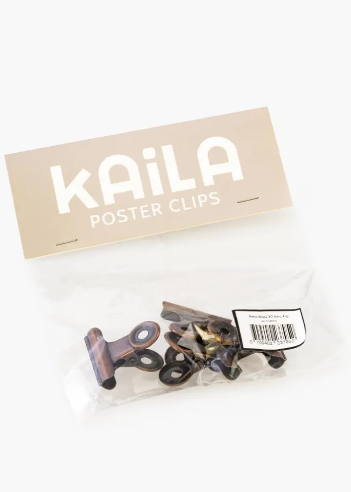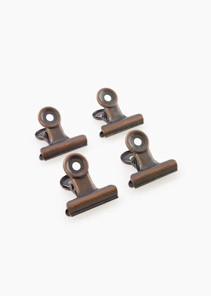 Dette er en rustik metalklemme med et flot, slidt messinglook som giver mulighed for en smart ophængning af plakater eller posters. Monteringen på din væg er også meget enkel takket være hullerne i posterklemmens elegante, runde top. Klemmens åbning giver et fleksibelt, men kraftigt greb som gør at du kan montere tyndt papir såvel som plakater der er lidt tykkere. Vil du hænge en stor plakat op, kan du altid vælge at anvende to metalklemmer.