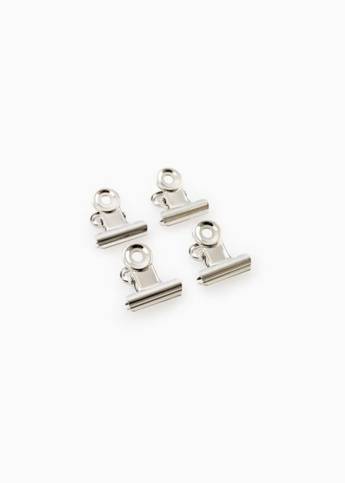 Denne metalklemme har en moderne og blank sølvfinish, og det er det perfekte værktøj som giver mulighed for at hænge dine plakater og posters op på en smart og enkel måde. Klemmens fleksible og gode greb gør at du kan hænge motiver med varierende tykkelse op, selv det allertyndeste papir. Hvis du har en stor plakat, anvender du bare to metalklemmer. Posterklemmens design er enkelt og stilrent, og hullerne i klemmens runde top gør monteringen på væggen enkel og let – alt du behøver er et lille søm eller en skrue.