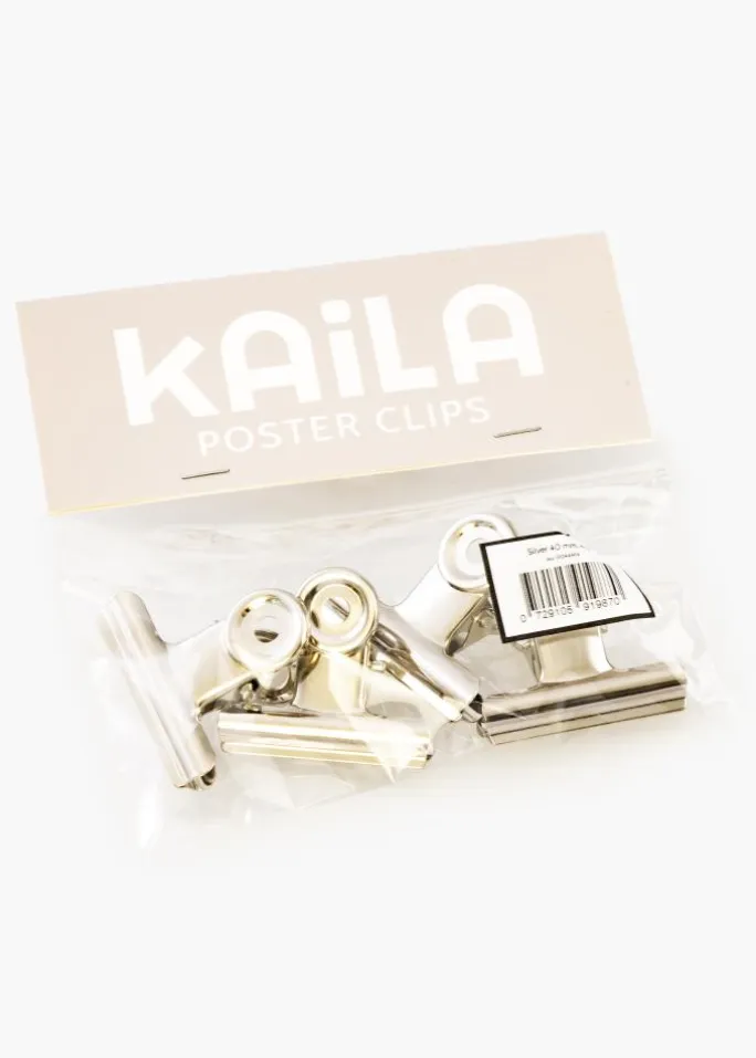 Denne metalklemme har en moderne og blank sølvfinish, og det er det perfekte værktøj som giver mulighed for at hænge dine plakater og posters op på en smart og enkel måde. Klemmens fleksible og gode greb gør at du kan hænge motiver med varierende tykkelse op, selv det allertyndeste papir. Hvis du har en stor plakat, anvender du bare to metalklemmer. Posterklemmens design er enkelt og stilrent, og hullerne i klemmens runde top gør monteringen på væggen enkel og let – alt du behøver er et lille søm eller en skrue.