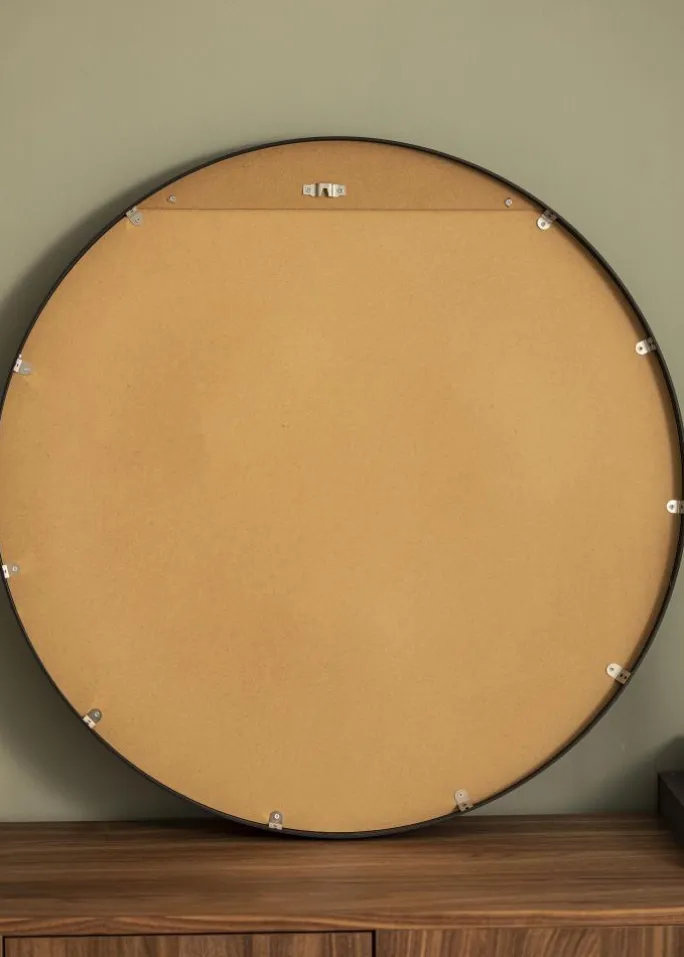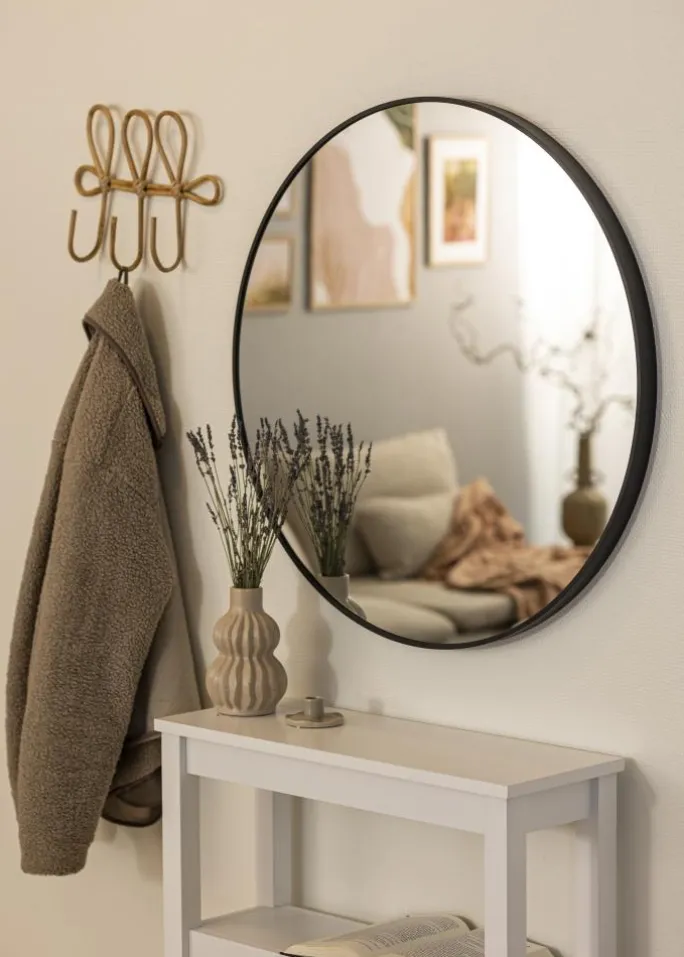 - Rundt spejl med dyb ramme i mat sort metal