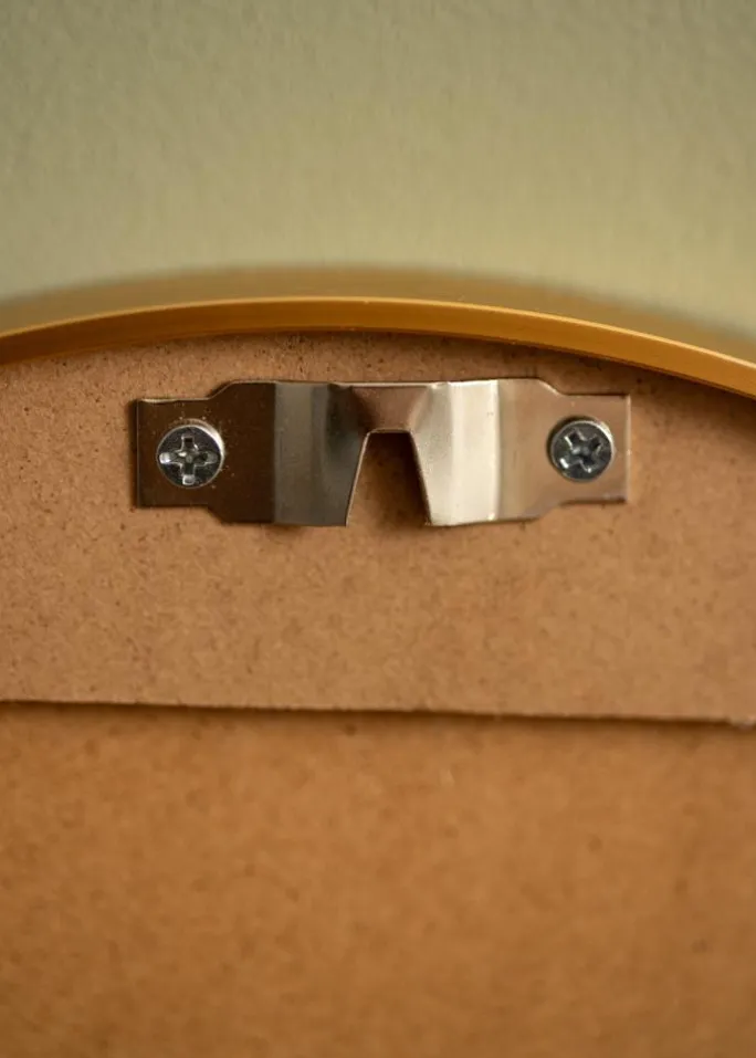 - Rundt spejl med dyb ramme i guldfarvet metal