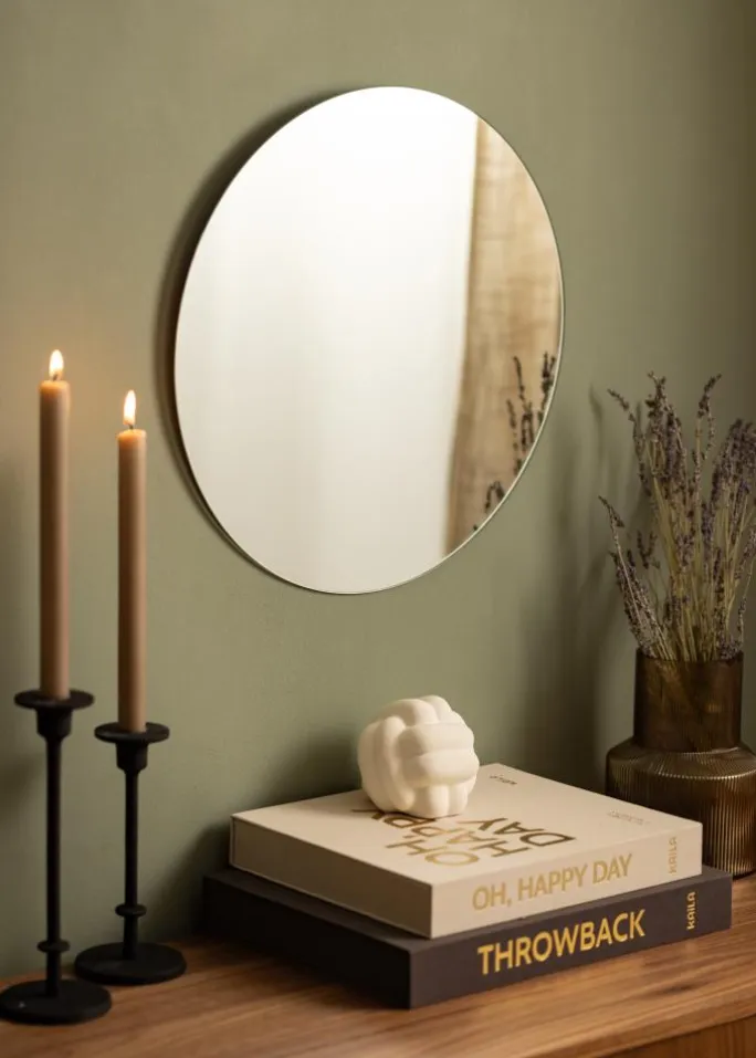 45 cm Ø rundt spejl som tilhører en serie af runde spejle fra KAILA. Fås i hele 13 størrelser, så du kan finde den størrelse der passer perfekt til dit rum. Spejlet er ekstremt tyndt, stilrent og passer ind i alle typer af rum og indretningsstile.