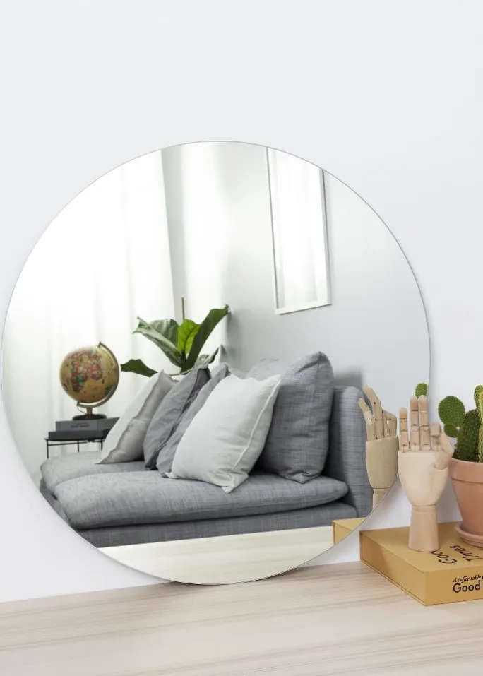 70 cm Ø rundt spejl som tilhører en serie af runde spejle fra KAILA. Fås i hele 13 størrelser, så du kan finde den størrelse der passer perfekt til dit rum. Spejlet er ekstremt tyndt, stilrent og passer ind i alle typer af rum og indretningsstile.