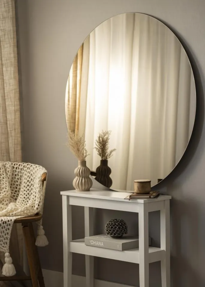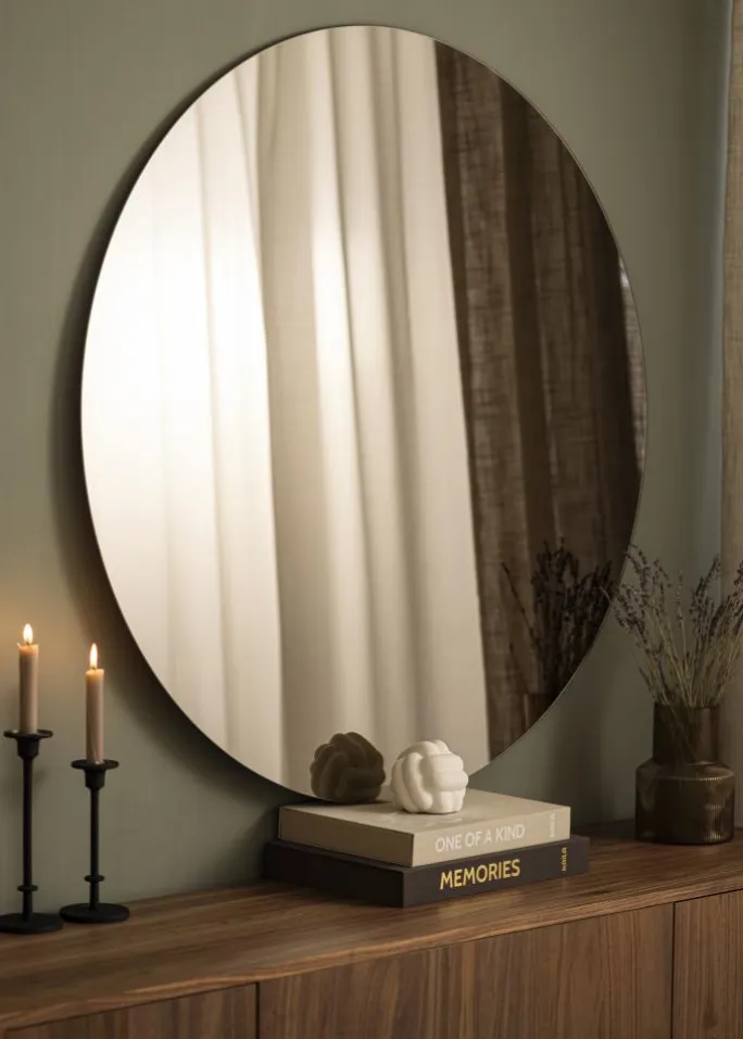 - Rundt spejl med bronzefarvet glas