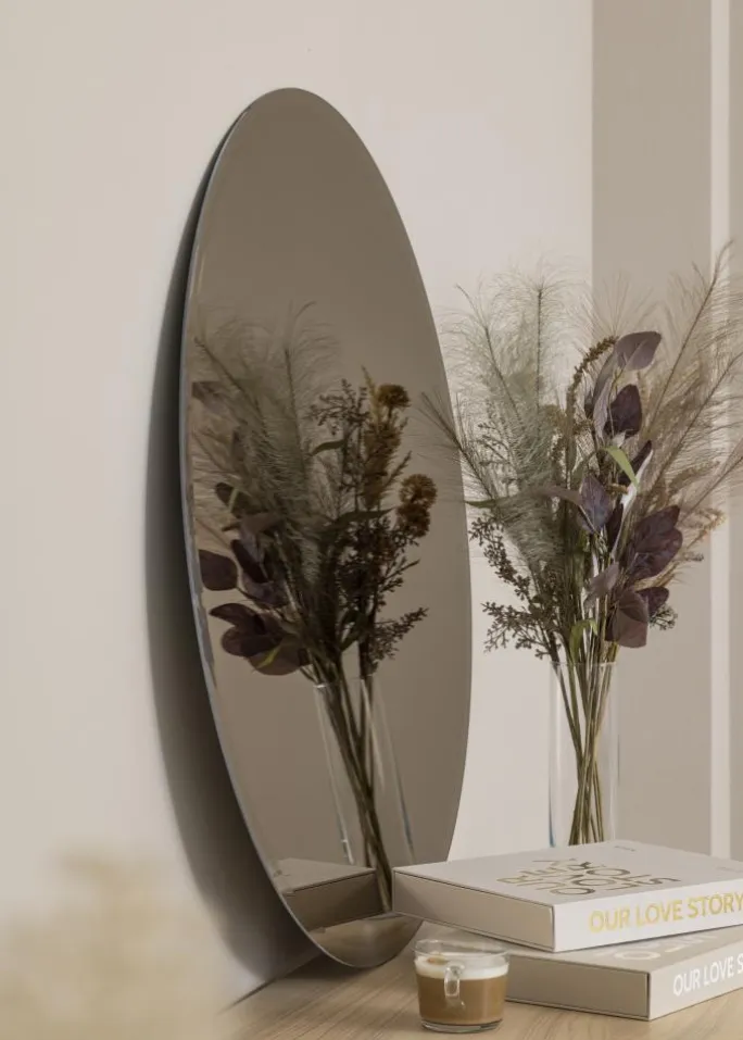 Et spejl i en mørkere bronzenuance kan udgøre et eksklusivt indslag i dit hjem. Dette vægspejl har en blød rund form og elegant bronzetonet spejlglas. Den eksklusive helhed suppleres med den slebne facetkant. Spejlet fungerer ligeså godt for sig selv som sammen med andre spejle i blandede størrelser og farvenuancer.