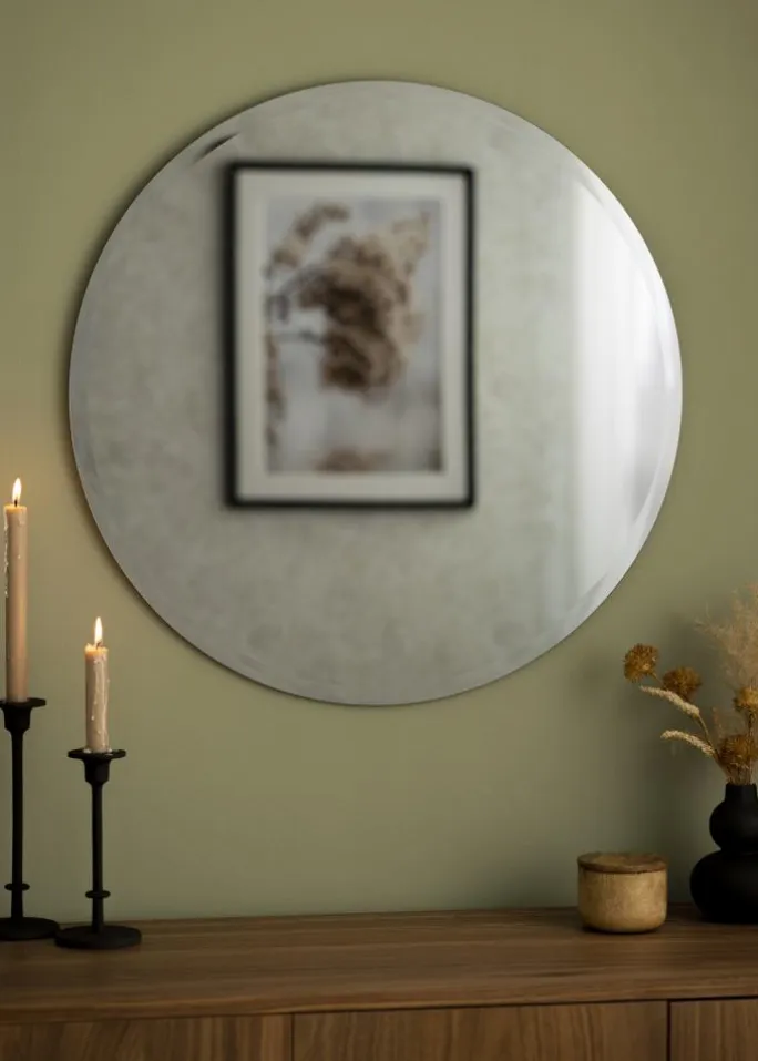 - Rundt spejl med en diameter på 70 cm