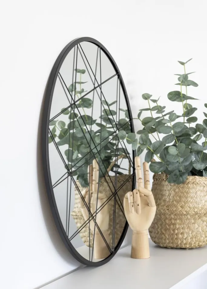 - Industrielt sort rundt spejl i metal