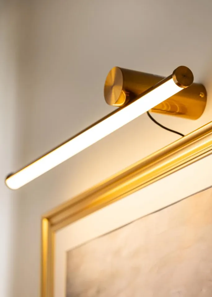 Denne billedbelysning er ikke kun en praktisk løsning til at belyse dine kunstværker, men fungerer også som en dekorativ detalje i sig selv. Med sit diskrete men stilfulde design i messing bliver den en elegant indramning for både moderne og klassiske kunstværker. Uanset om du har et stort billede, der kræver fokus, eller en mindre kunstinstallation, vil denne belysning give det rette lys og fremhæve dine værker på bedste vis.