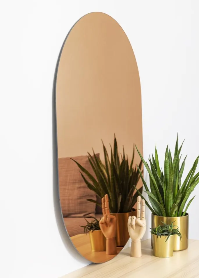 - Ovalt vægspejl med glas tonet i roséguld