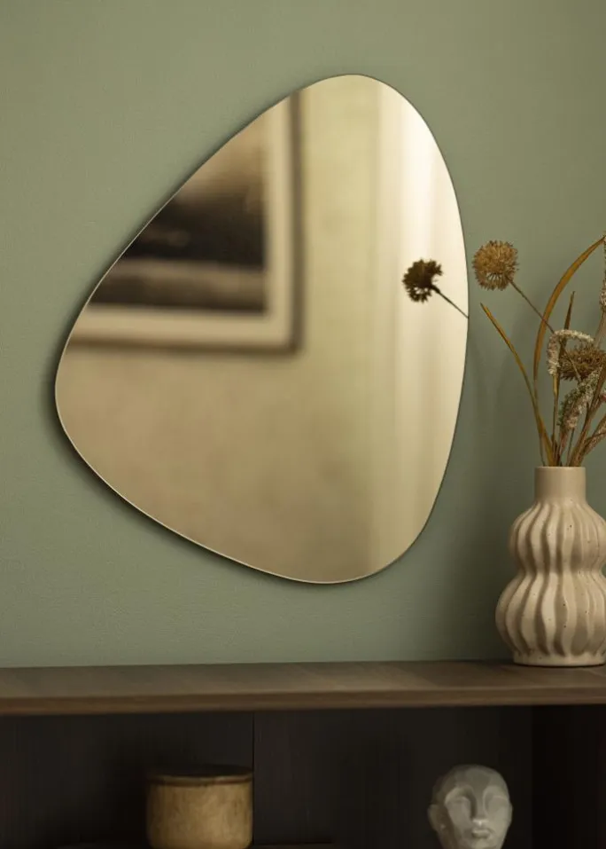 Oplev den unikke charme ved vores moderne og organisk formede spejl, perfekt til at tilføje en touch af naturens blødhed til dit hjem. Med sine bløde linjer og naturlige konturer minder spejlet om en glat sten eller et vanddråbeformet blad, hvilket skaber en harmonisk atmosfære i ethvert rum.