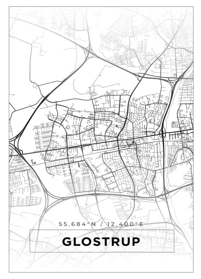 Kort – Glostrup – Hvid Plakat (21×29.7 cm (A4))