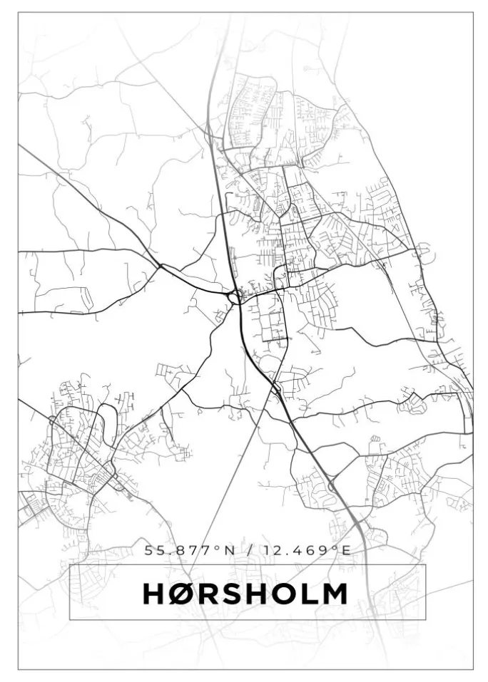 Kort – Hørsholm – Hvid Plakat (21×29.7 cm (A4))