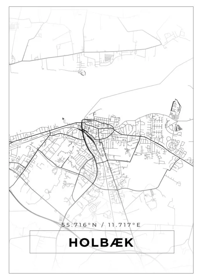 Kort – Holbæk – Hvid Plakat (21×29.7 cm (A4))