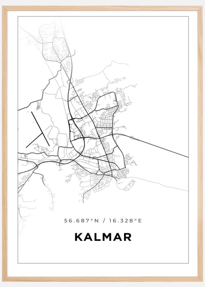 Kort – Kalmar – Hvid Plakat (21×29.7 cm (A4))