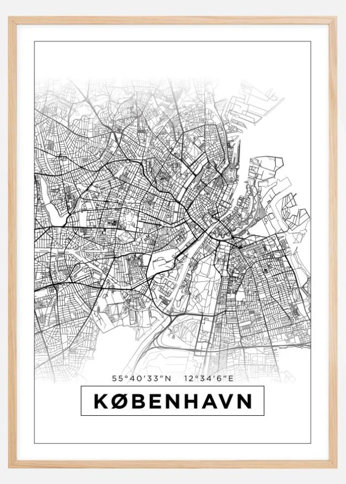 Kort – København – Hvid Plakat (21×29.7 cm (A4))